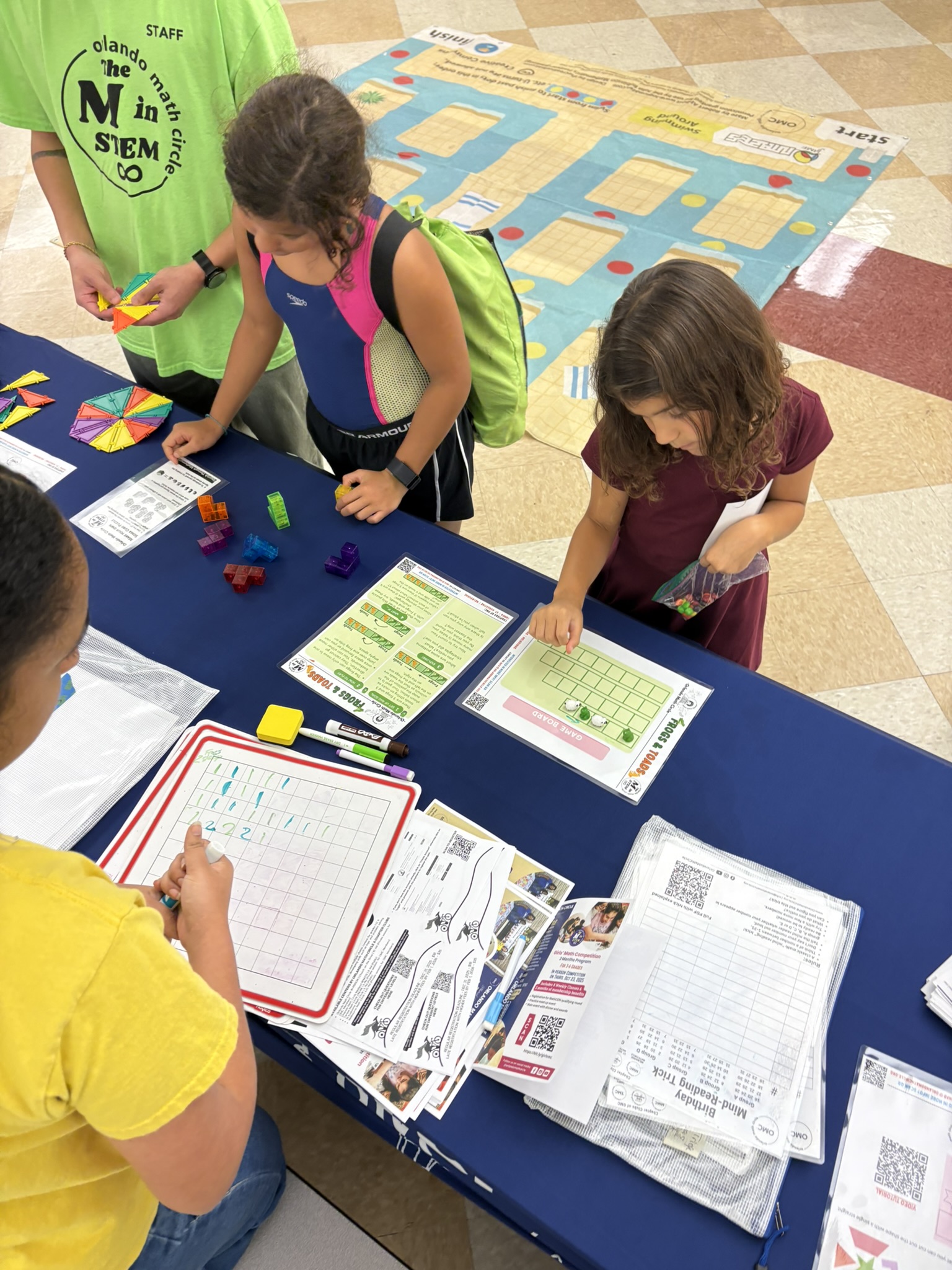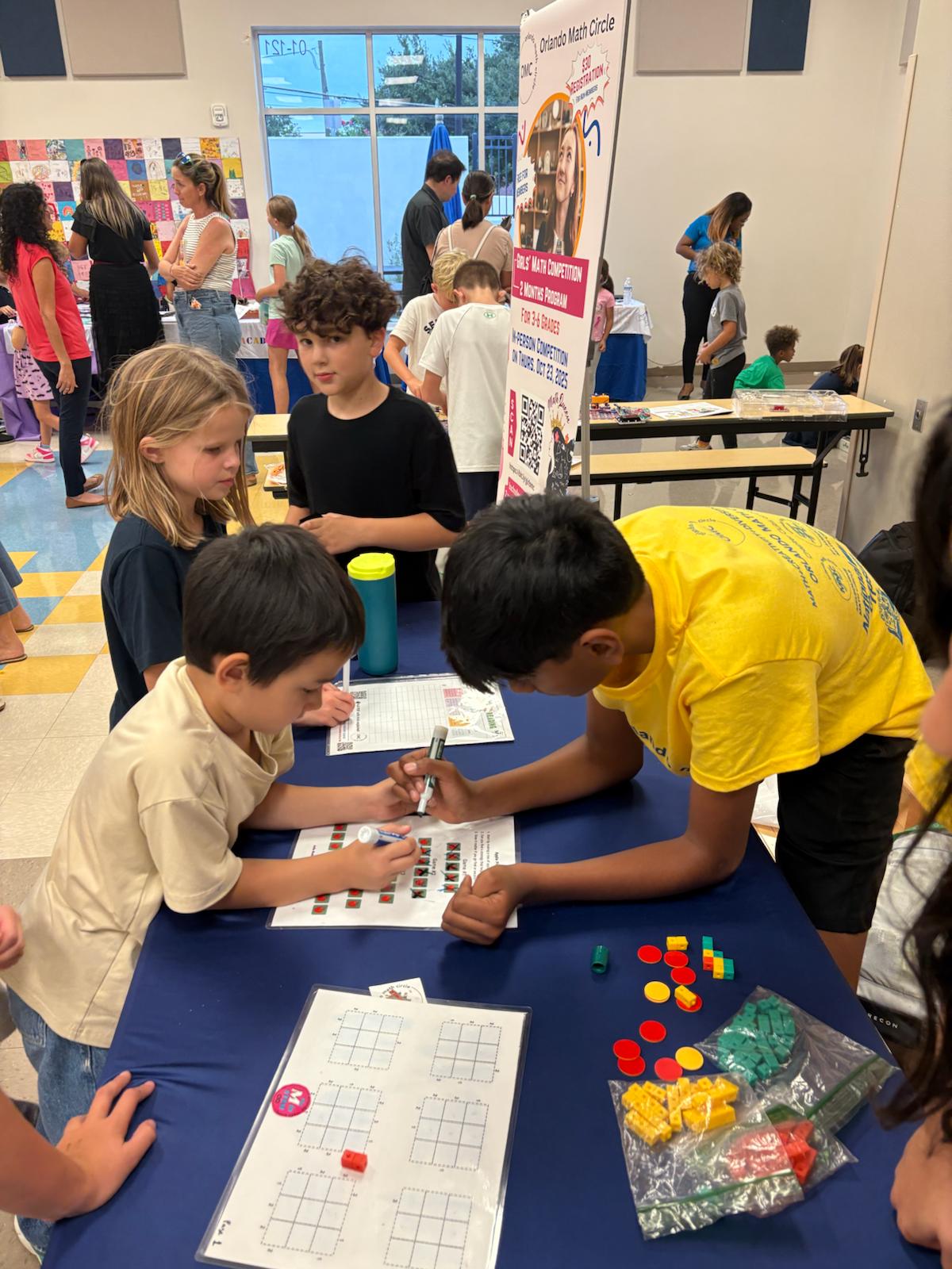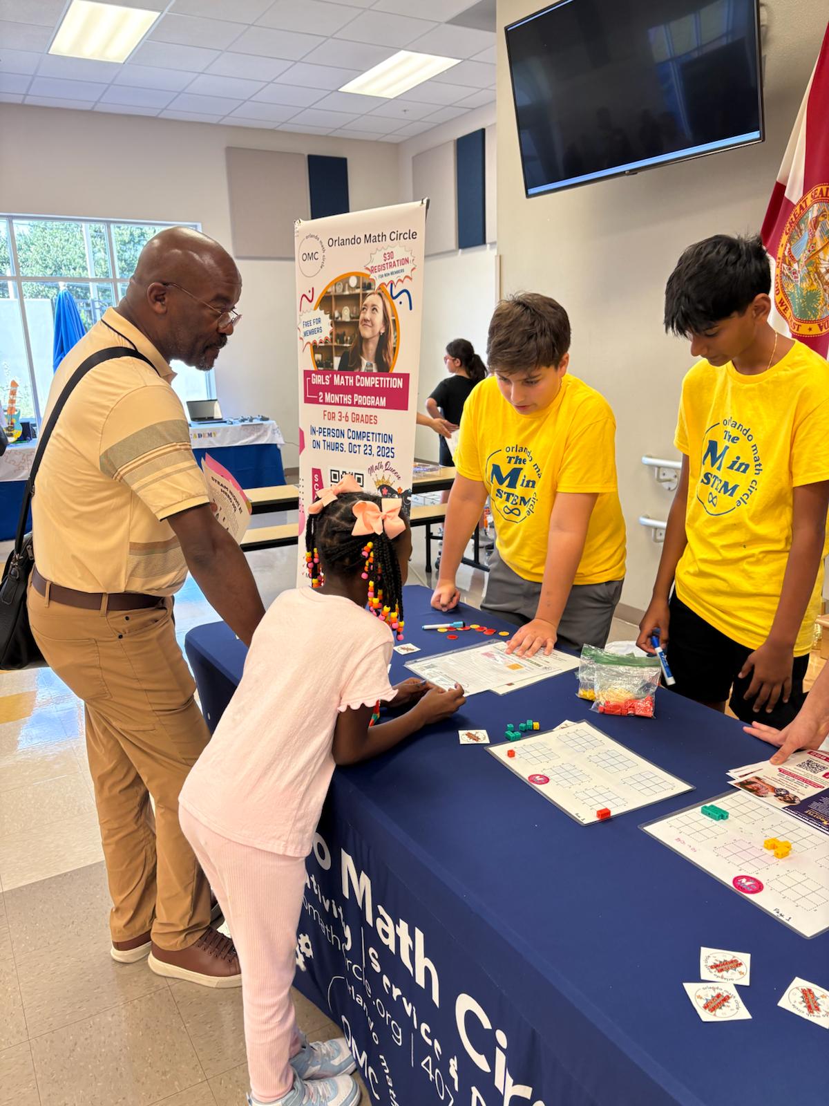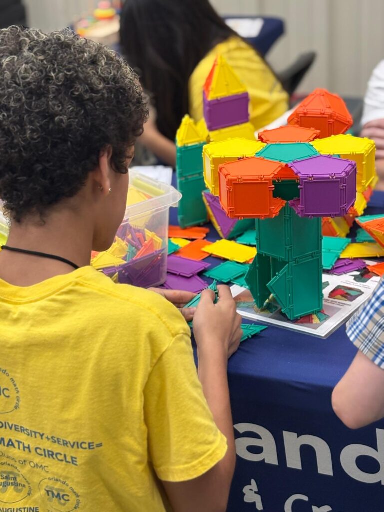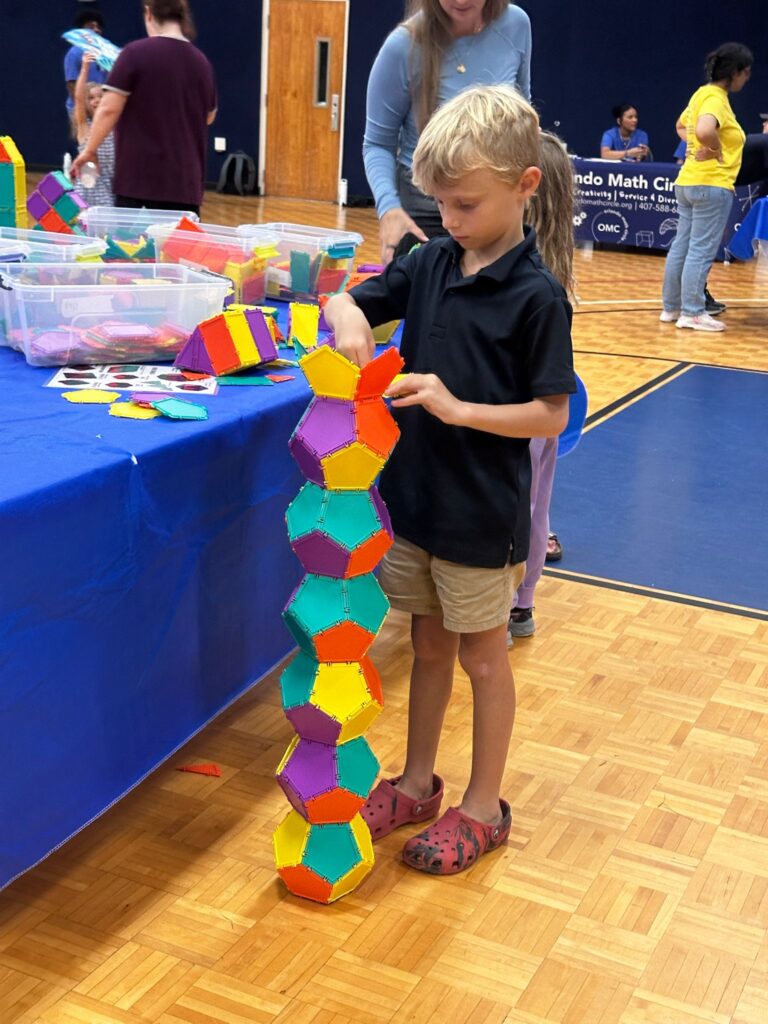 Orlando Math Circle partnered with Osceola Science Charter School to launch a new tradition of School Math Festivals — fun, hands-on events that brought families and children together to explore, play, and discover the joy of mathematics!